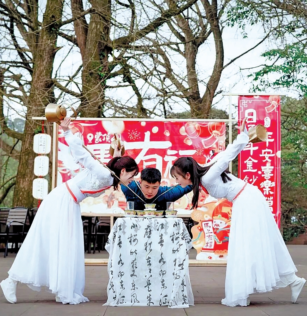 蒙顶山景区为游客推出茶技表演