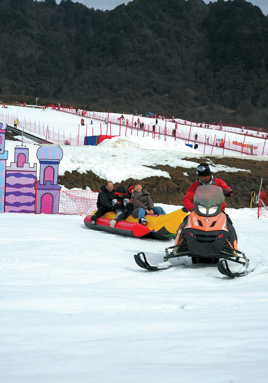 游客在王岗坪景区体验冰雪乐趣