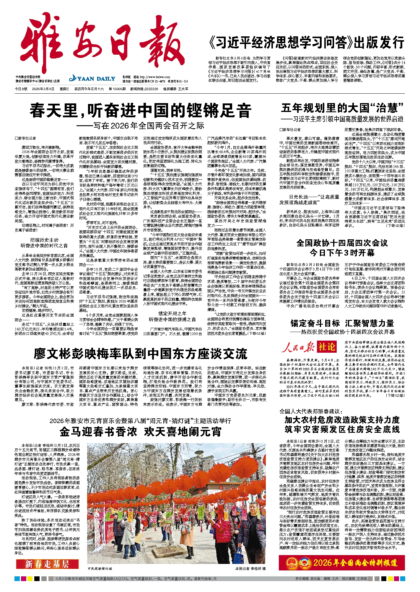 “相信全国两会将部署一系列稳预期、强信心、添动力、激活力的政策举措,确保新的五年规划开好局、起好步。”全国政协委员、清华大学教授聂鑫说。