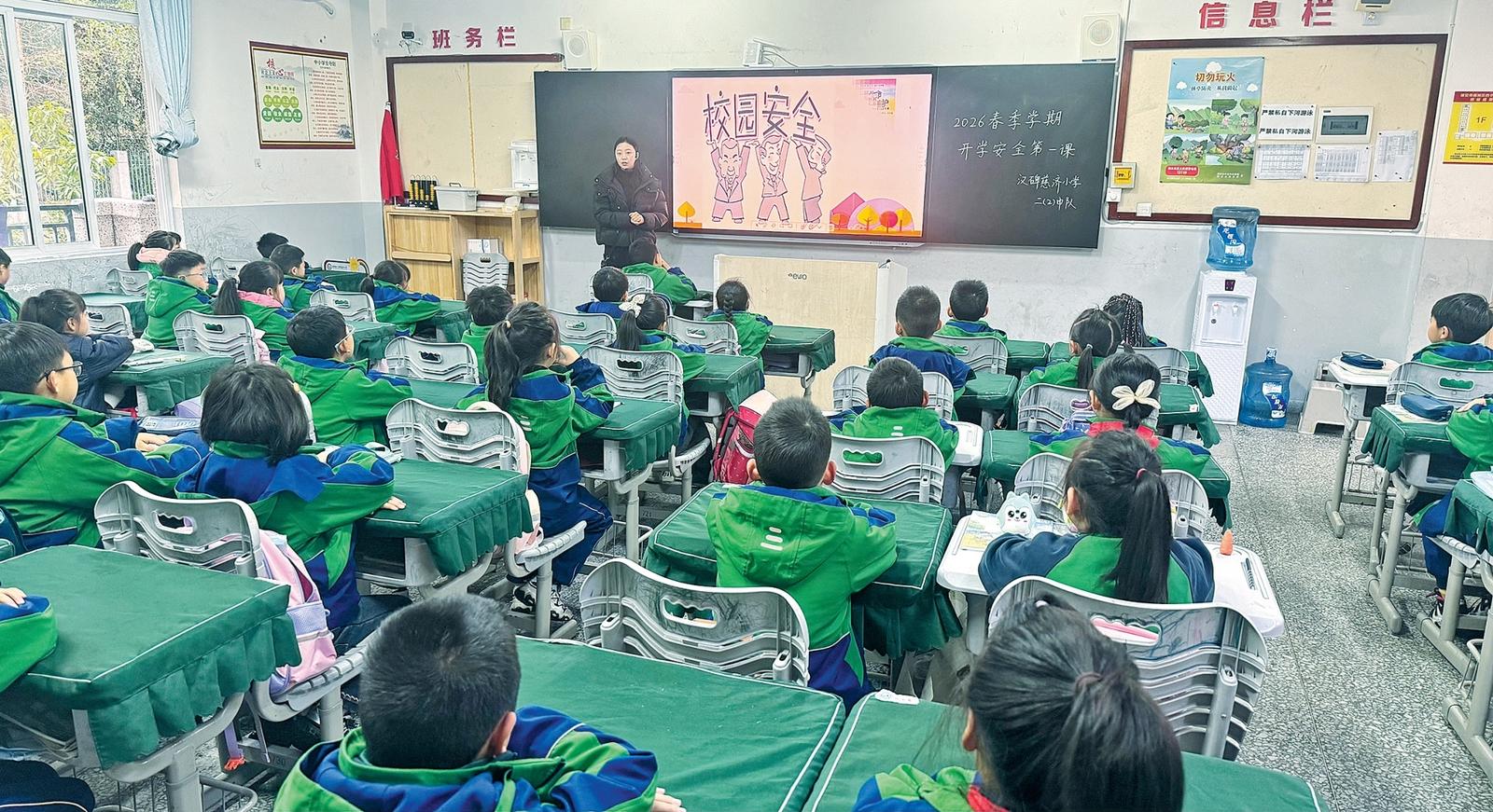 “今天的‘开学第一课’主要围绕校园安全、森林草原防灭火、防溺水、交通、网络及食品安全等内容展开,根据不同年级学生的认知特点,设计了差异化的教学形式和互动环节。”雨城四小教育集团汉碑校区相关负责人介绍,这堂课不仅是为了普及安全知识,更重要的是帮助学生迅速“收心”,从假期模式平稳过渡到学习模式,引导他们立志向、启新航,以饱满的精神状态迎接新学期的挑战。