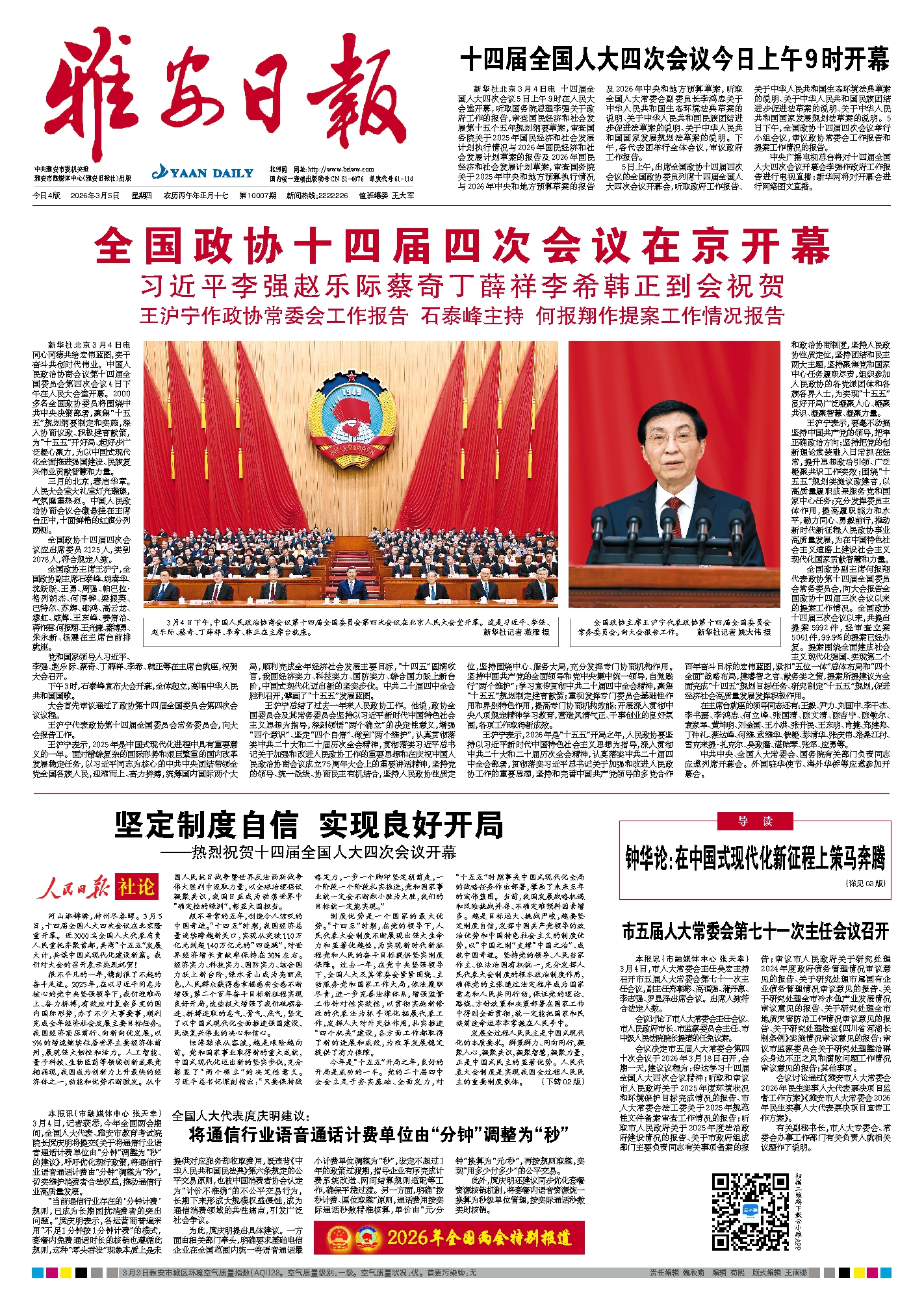 会议讨论通过《雅安市人大常委会2026年民生实事人大代表票决项目监督工作方案》《雅安市人大常委会2026年民生实事人大代表票决项目宣传工作方案》。