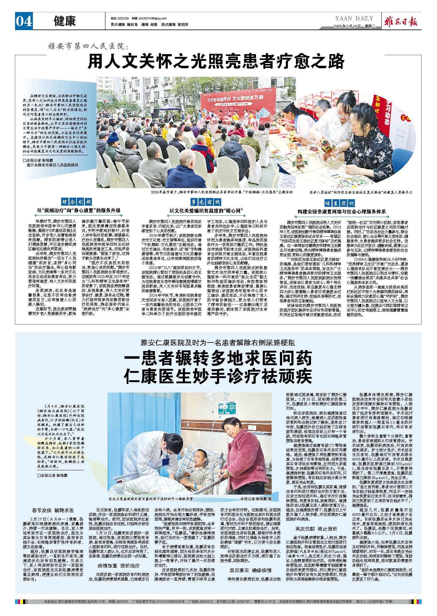 半个月前,家人曾带着杨鹏在雅安、成都4家医院辗转求医,如今悬着的心终于能落下。“今天就可以办理出院,是雅安仁康医院救了我的命。”话语间,杨鹏脸上满是感激之情。