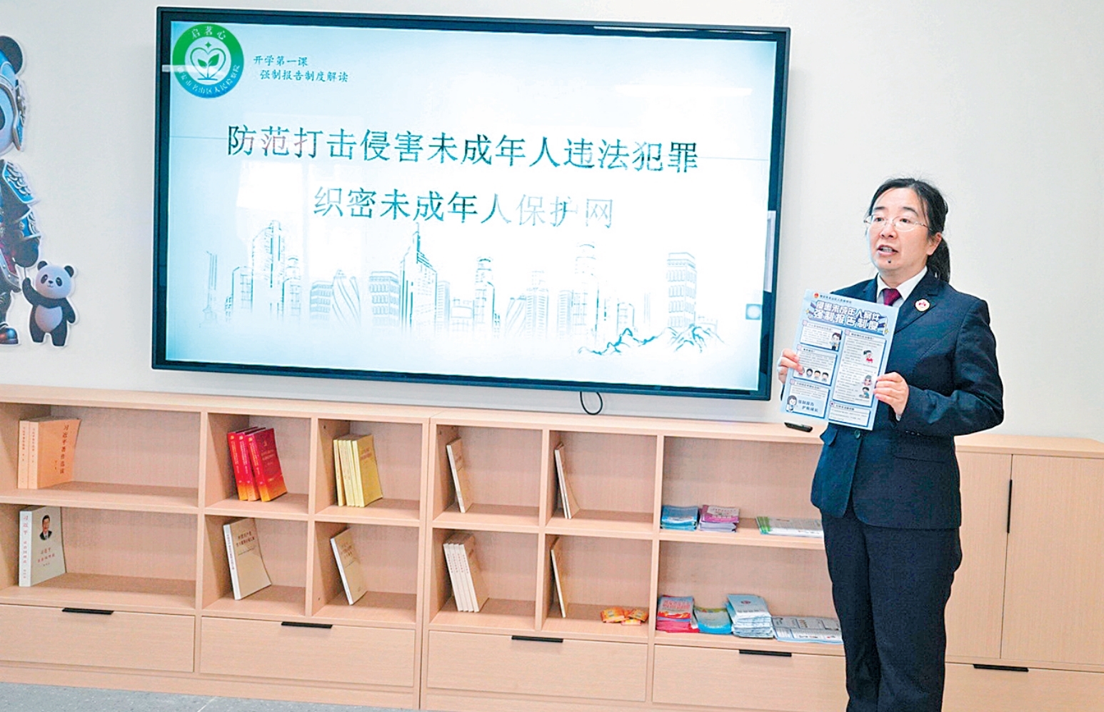本报讯(吴玉梅 记者 李晓明)近日,名山区人民检察院“启茗心”办案团队在雅安市第九中学驻校检察室开展“开学第一课”法治宣讲。检察官围绕法律知识、典型案例、强制报告制度等内容,为学生和老师送上新学期第一份“成长礼包”,帮助孩子们增强法治意识,守护孩子们健康成长。