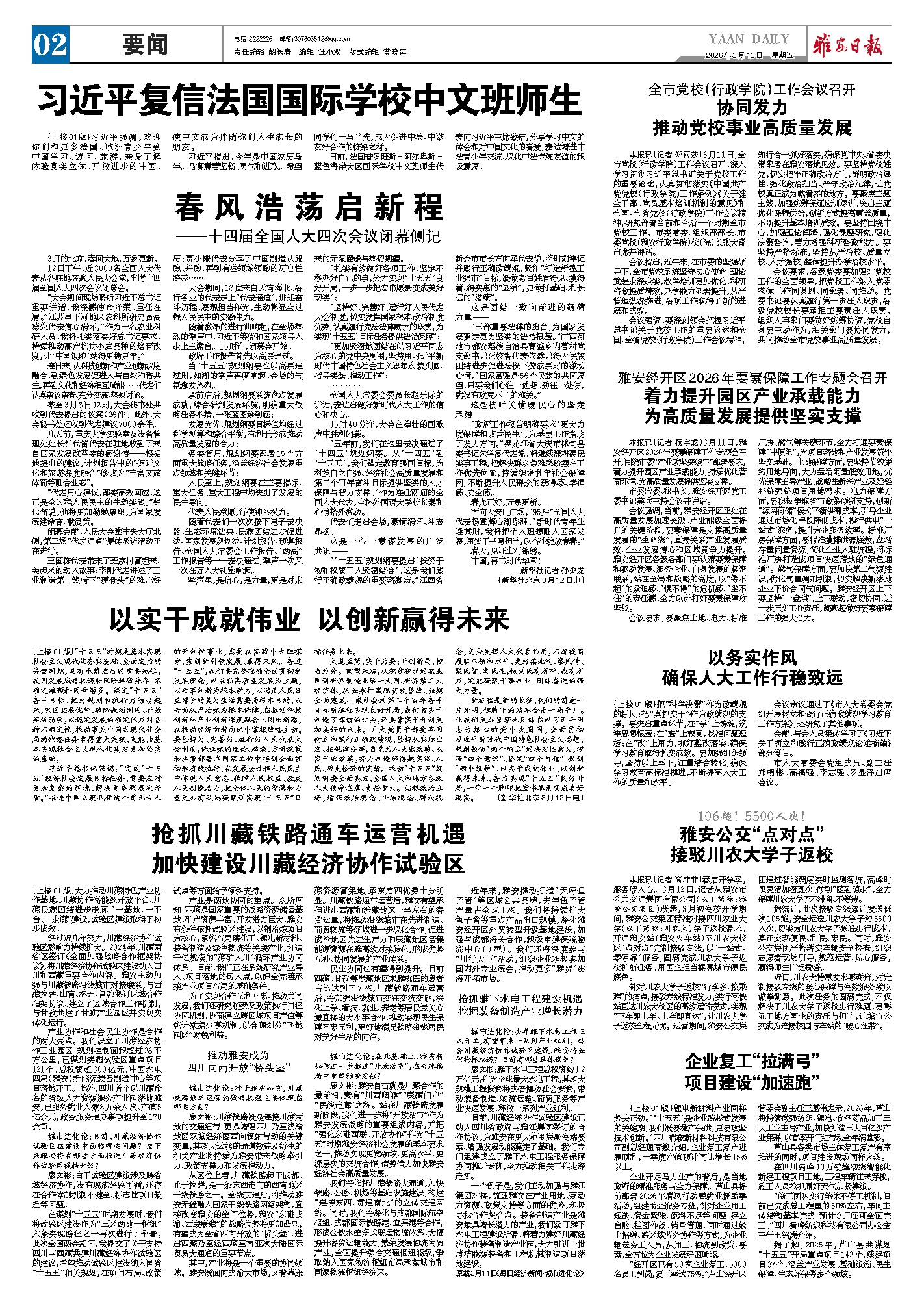 本报讯(记者 高菲菲)春启开学季,服务暖人心。3月12日,记者从雅安市公共交通集团有限公司(以下简称:雅安公交集团)获悉,3月初高校开学期间,雅安公交集团精准对接四川农业大学(以下简称:川农大)学子返校需求,开通雅安站(雅安火车站)至川农大校区“点对点”定制接驳专线,以“一站式、零停靠”服务,圆满完成川农大学子返校护航任务,用国企担当擦亮城市便民底色。