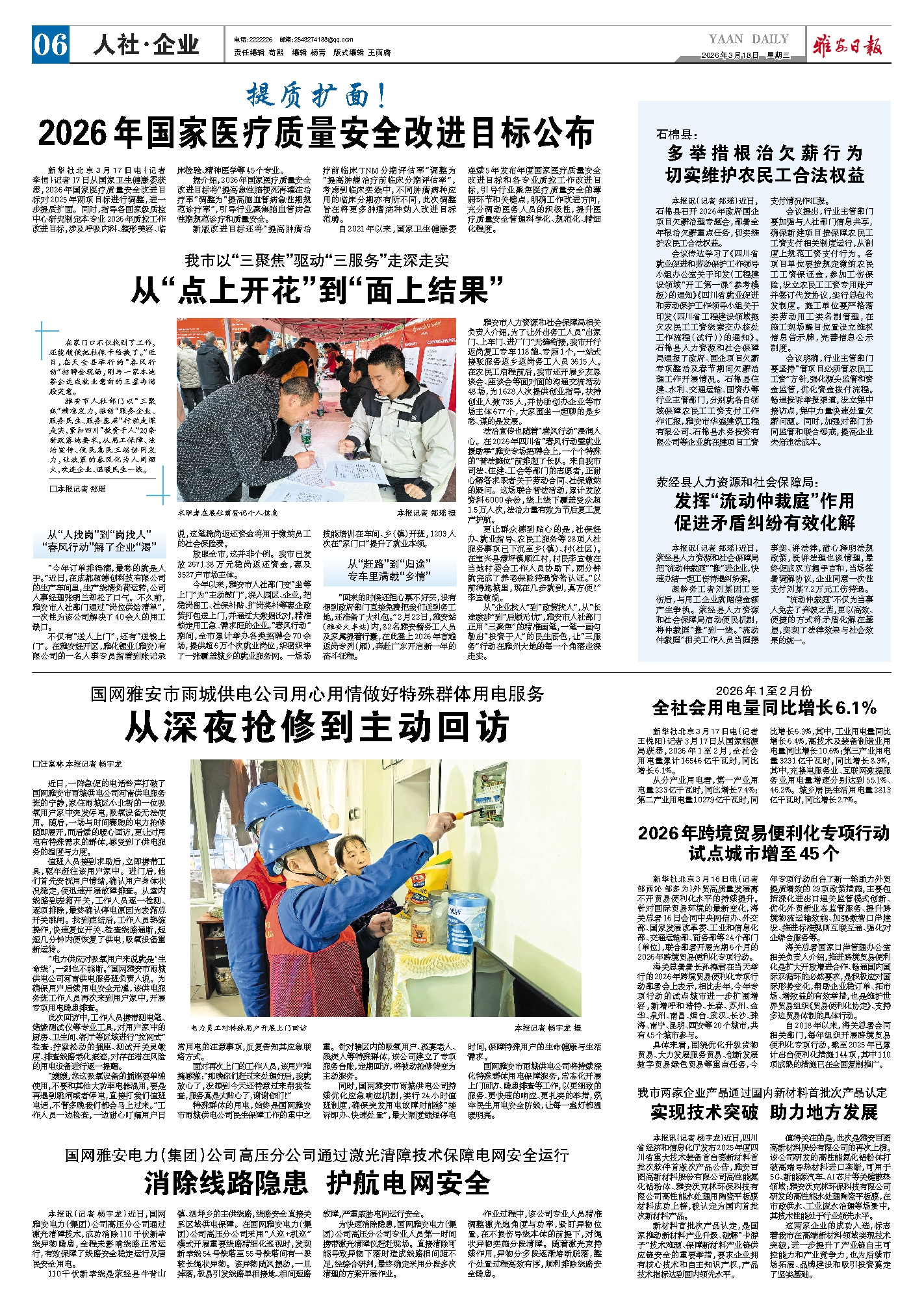 新华社北京3月17日电(记者 李恒)记者17日从国家卫生健康委获悉,2026年国家医疗质量安全改进目标对2025年两项目标进行调整,进一步提质扩面。同时,指导各国家级质控中心研究制定本专业2026年质控工作改进目标,涉及呼吸内科、整形美容、临床检验、精神医学等45个专业。