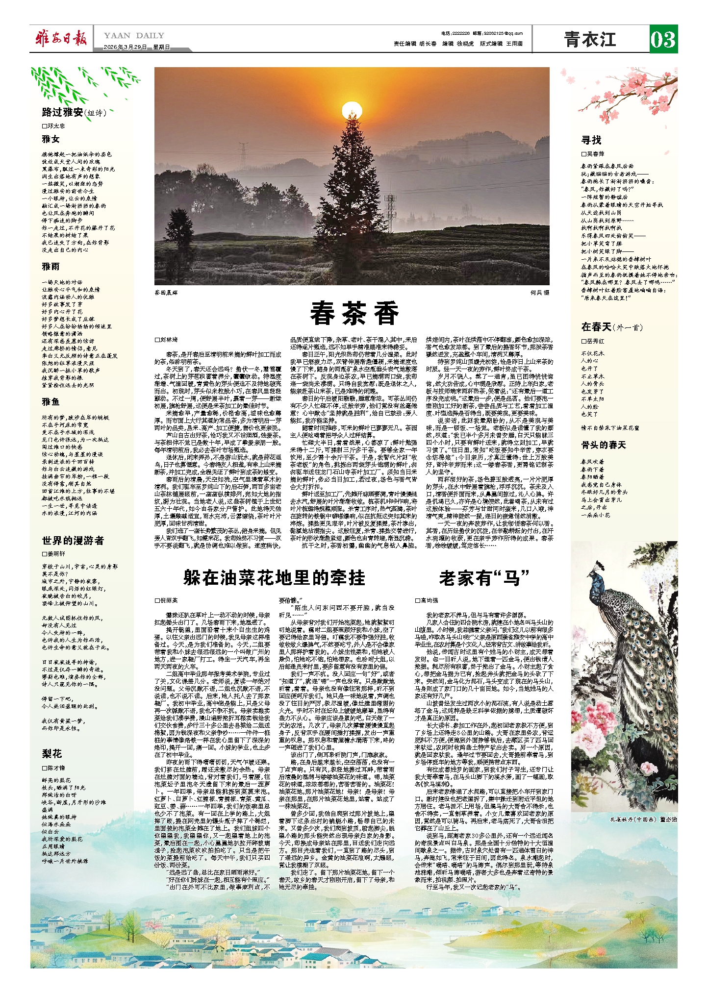 春日的午后暖阳融融,睡意渐浓。可茶丛间仍有不少人忙碌不停,这般辛劳,他们竟没有丝毫倦意?心中默念“坚持就是胜利”,给自己鼓劲:旁人能扛,我亦能坚持。