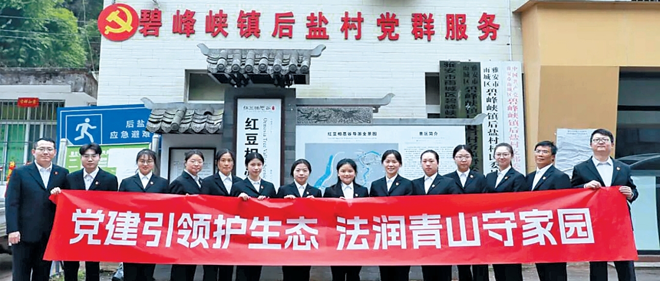本报讯(余秋妹 记者 李晓明)春归万物苏,法治暖人心。近日,雨城区人民法院第二党支部组织全体党员及入党积极分子走进雨城区碧峰峡镇后盐村开展主题党日活动,以党建引领生态保护、以法治守护雨城绿水青山。