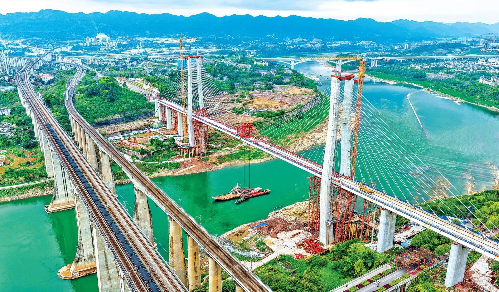 3月31日,由中铁大桥局承建的成渝中线高铁井口嘉陵江特大桥顺利合龙,标志着成渝中线高铁全线桥梁全部合龙,为按期通车奠定了坚实基础。