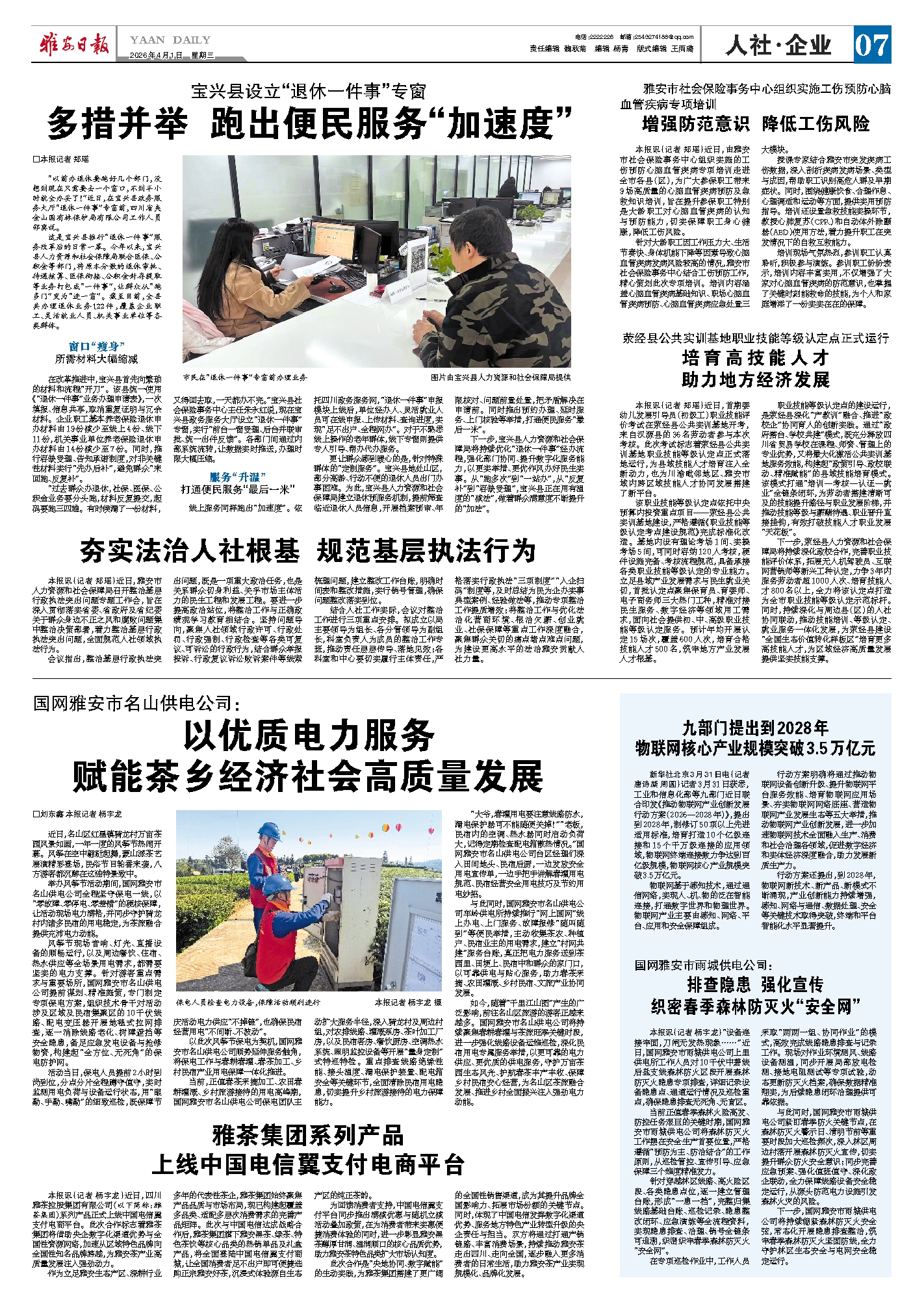 “过去群众办退休,社保、医保、公积金业务要分头跑,材料反复提交,起码要跑三四趟。有时候漏了一份材料,又得回去取,一天都办不完。”宝兴县社会保险事务中心主任朱永红说,现在宝兴县政务服务大厅设立“退休一件事”专窗,实行“前台一窗受理、后台并联审批、统一出件反馈”。各部门间通过内部系统流转,让数据实时推送,办理时限大幅压缩。