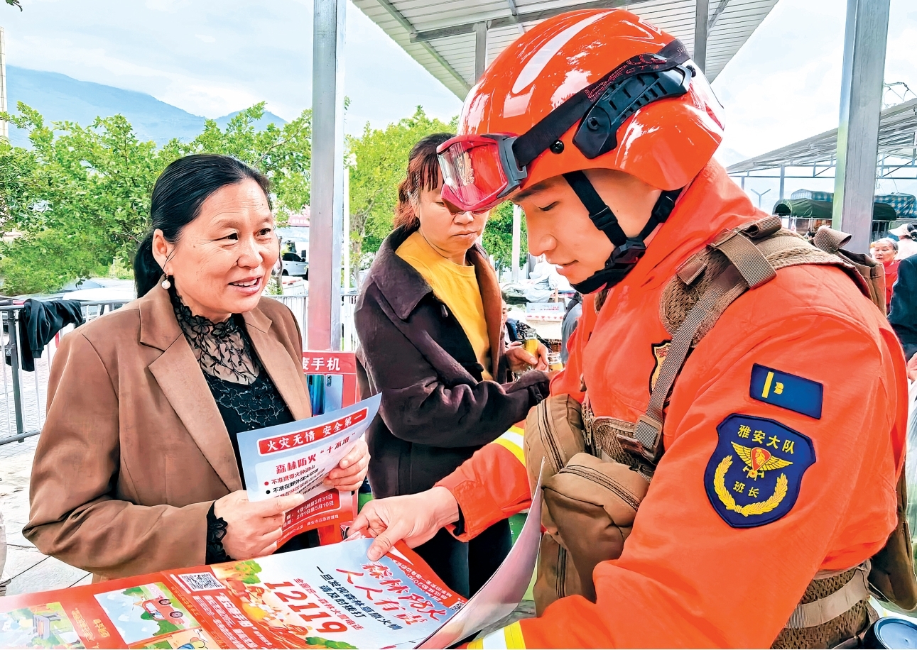 全市坚持“贴近群众、贴近一线、贴近实际”,创新宣传形式、延伸宣传触角,构建“集中宣传+入户宣讲+流动宣教”的立体格局。雨城区在碧峰峡镇开展装备展示、现场实操与互动体验活动,现场演示风力灭火机、高压水泵、无人机等专业装备,用真实案例以案释法,让市民直观学习防火知识与应急技能;荥经县聚焦重点人群精准宣传,大范围推送防火短信,在广场、社区开展面对面宣讲;石棉县、宝兴县针对少数民族区域开展双语宣传,确保宣传全覆盖、不留死角盲区;雅安消防救援机动大队联合汉源县综合应急救援大队,将防火宣传、带装巡护、灭火拉动演练一体推进,实现宣传与实战同步推进。