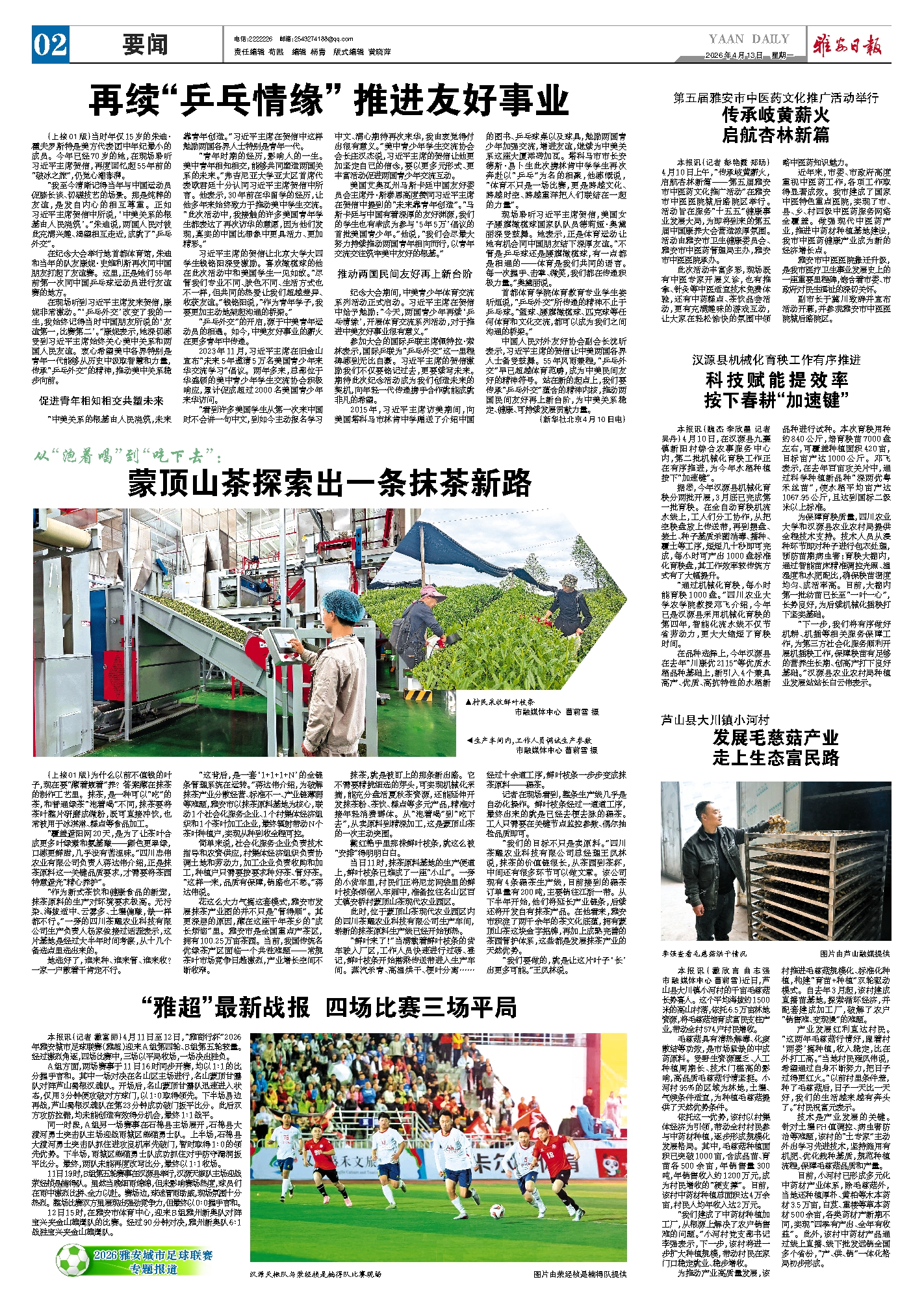 “我们的目标不只是卖原料。”四川茶醒农业科技有限公司总经理王凤林说,抹茶的价值链很长,从茶园到茶杯,中间还有很多环节可以做文章。该公司现有4条碾茶生产线,目前接到的碾茶订单量有200吨,主要销往江浙一带。从下半年开始,他们将延长产业链条,后续还将开发自有抹茶产品。在他看来,雅安市积淀了两千余年的茶文化底蕴,拥有蒙顶山茶这块金字招牌,再加上成熟完善的茶园管护体系,这些都是发展抹茶产业的天然优势。