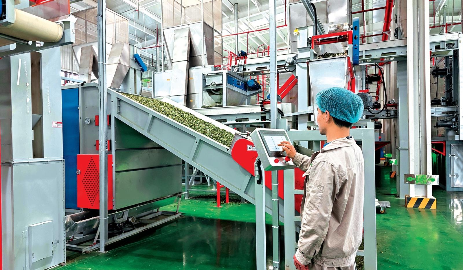 记者在现场看到,整条生产线几乎是自动化操作。鲜叶枝条经过一道道工序,最终出来的就是已经去梗去脉的碾茶。工人只需要在关键节点监控参数、偶尔抽检品质即可。