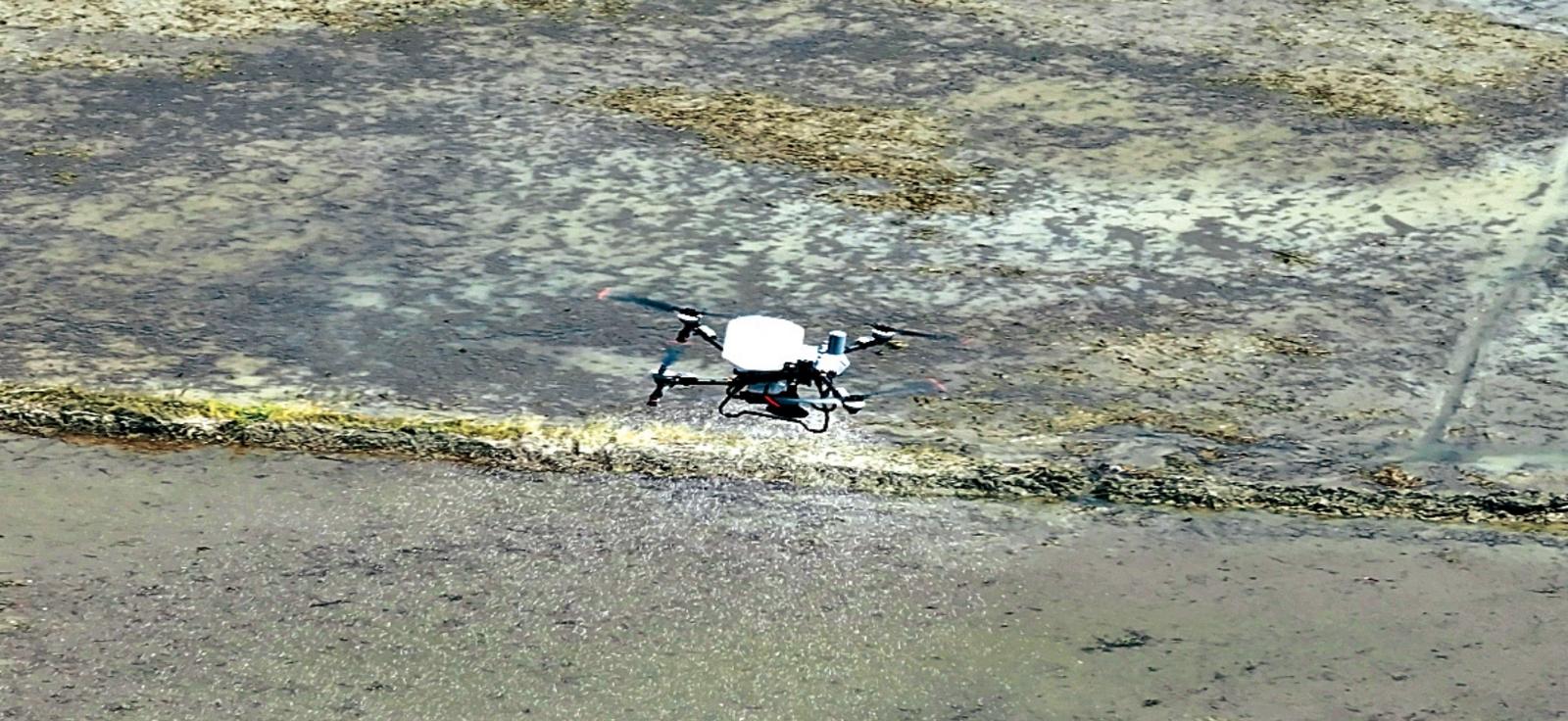 无人机完成水稻播种后,进行肥料播撒作业市融媒体中心 张天幸 摄