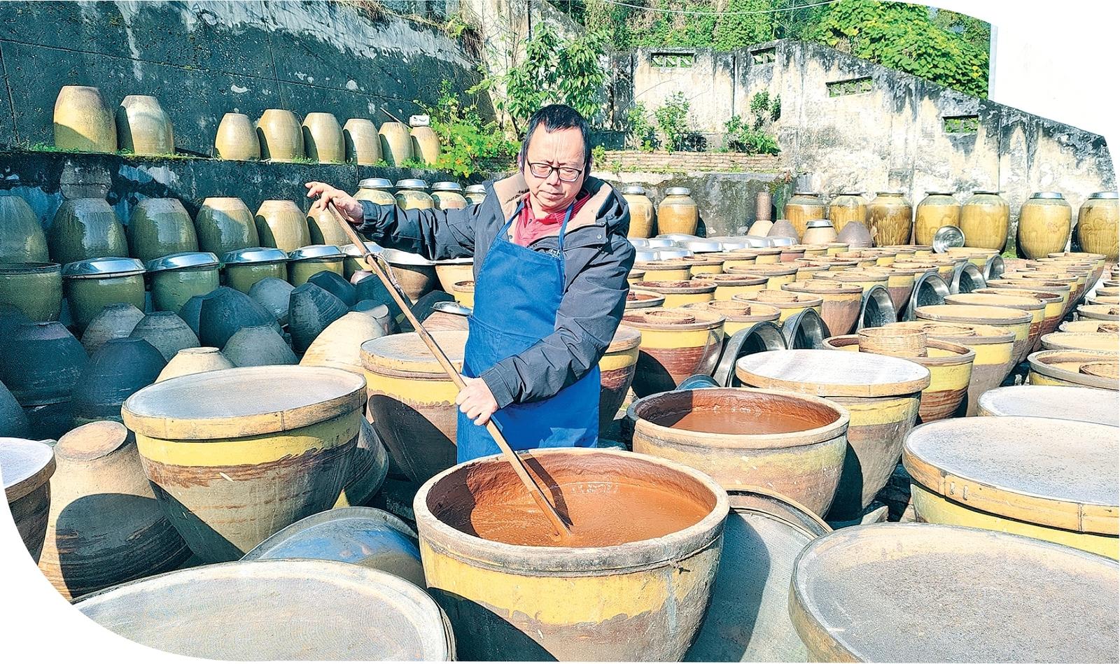 高家强正在搅动酱缸
