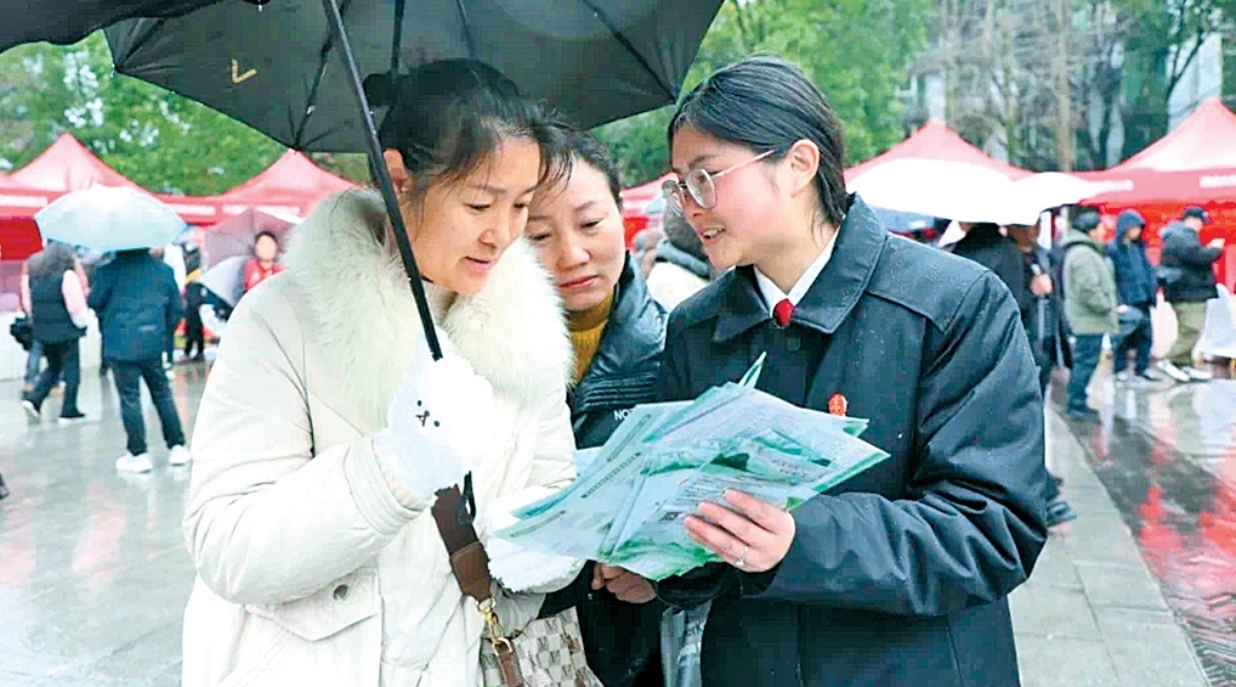 本报讯 春风送暖,法治同行。“我想咨询一下签订劳动合同时需要注意些什么?”“劳动合同试用期能约定多久?”“如果老板拖欠工资,我想打官司要准备哪些资料?”近日,天全县人民法院组织干警走进天全县2025年“春风行动”专场招聘会现场,开展普法宣传活动,为求职者和企业送上“法治礼包”。