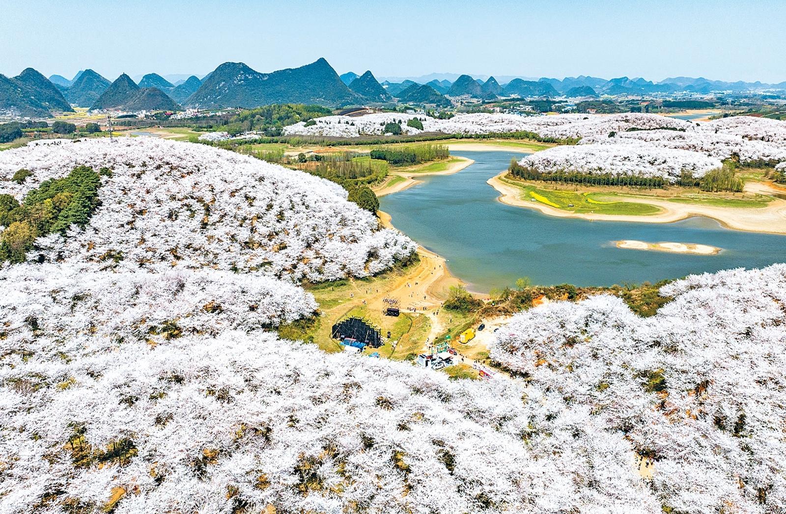 近日,贵州省贵安新区樱花园内的2.4万亩樱花迎来盛花期,吸引各地游客前来赏花游玩。 贵安新区在提升旅游服务质量的基础上,不断丰富业态,通过“赏花+研学”“赏花+度假”等模式,探索将单一赏花场景升级为复合型文旅体验。2024年,贵安樱花园实现综合经济收入313万元。
