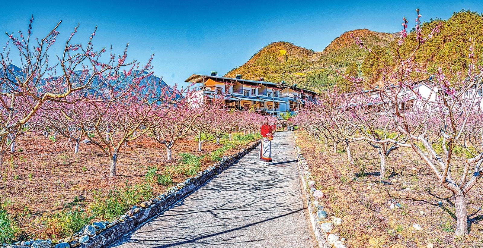 近日,在石棉县安顺场镇松林村的千亩桃园里,大片桃花次第绽放。