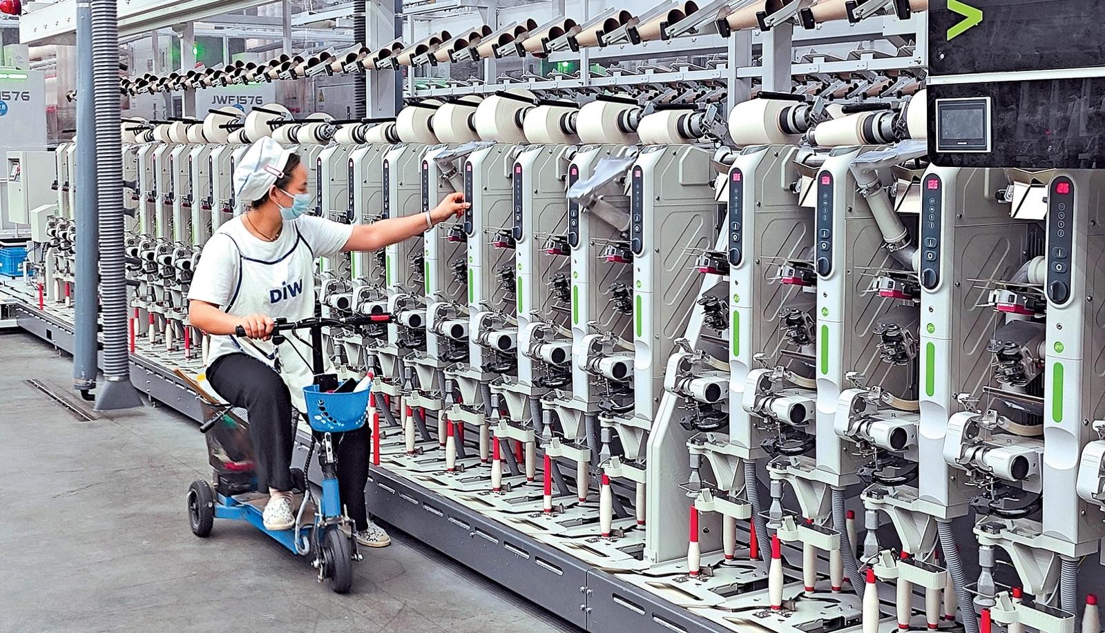走进雅安市圣善纺织科技有限公司(以下简称:圣善纺织)二期项目生产车间,明亮干净的车间内,各类机器有序运转;工人骑着电动巡回小车,根据智能化管理系统传回的故障提示,在各生产环节精准有效地进行维护。
