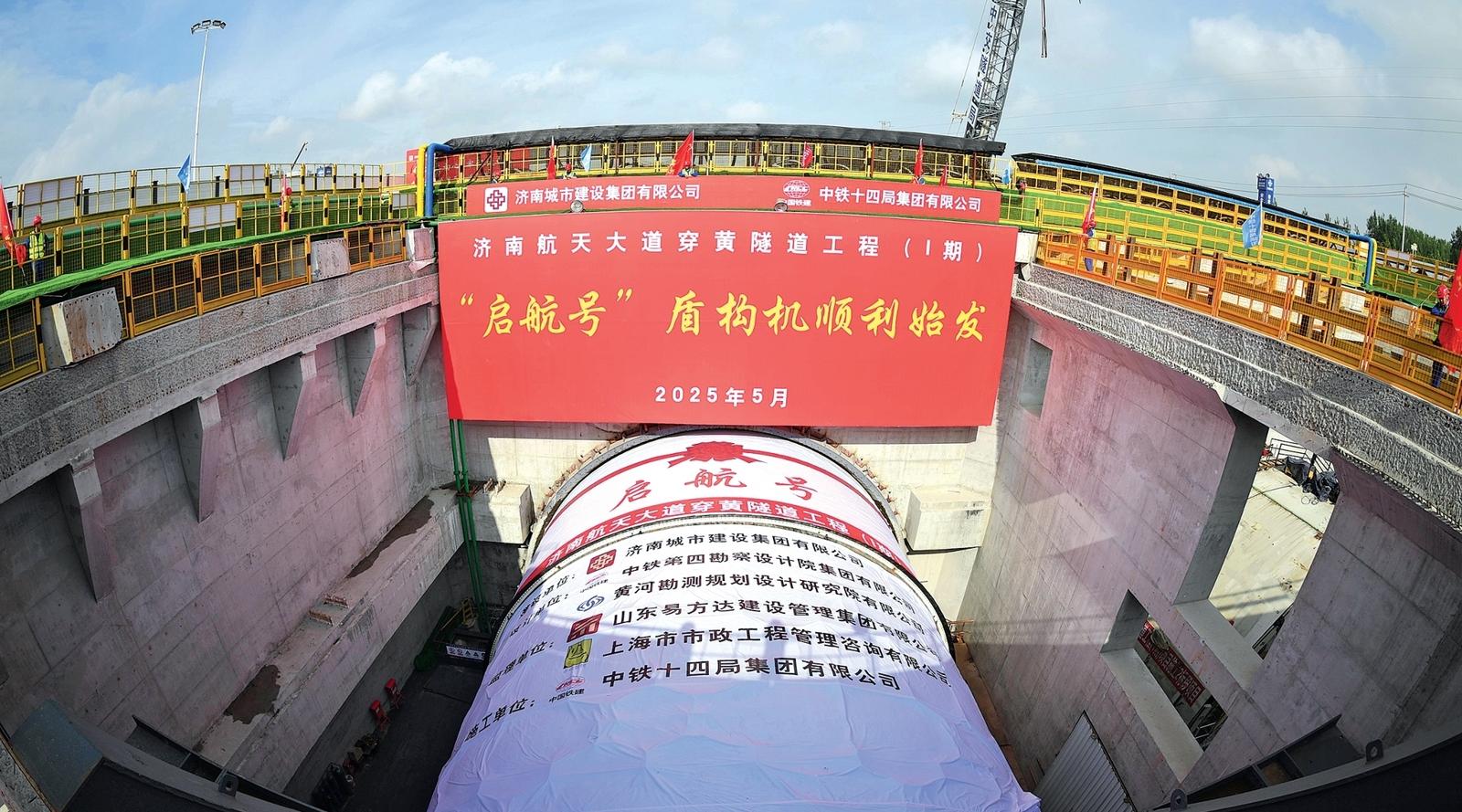 5月9日,“启航号”盾构机始发。当日,由济南城市建设集团投资建设、中铁十四局承建的济南航天大道穿黄隧道工程南线“启航号”盾构机顺利始发,开挖直径达15.06米。济南航天大道穿黄隧道是规划中济南遥墙国际机场与济南新旧动能转换起步区之间的重要通道,全长3888米,采用双向6车道城市主干路技术标准,设计时速60公里,其中盾构段长3252米。