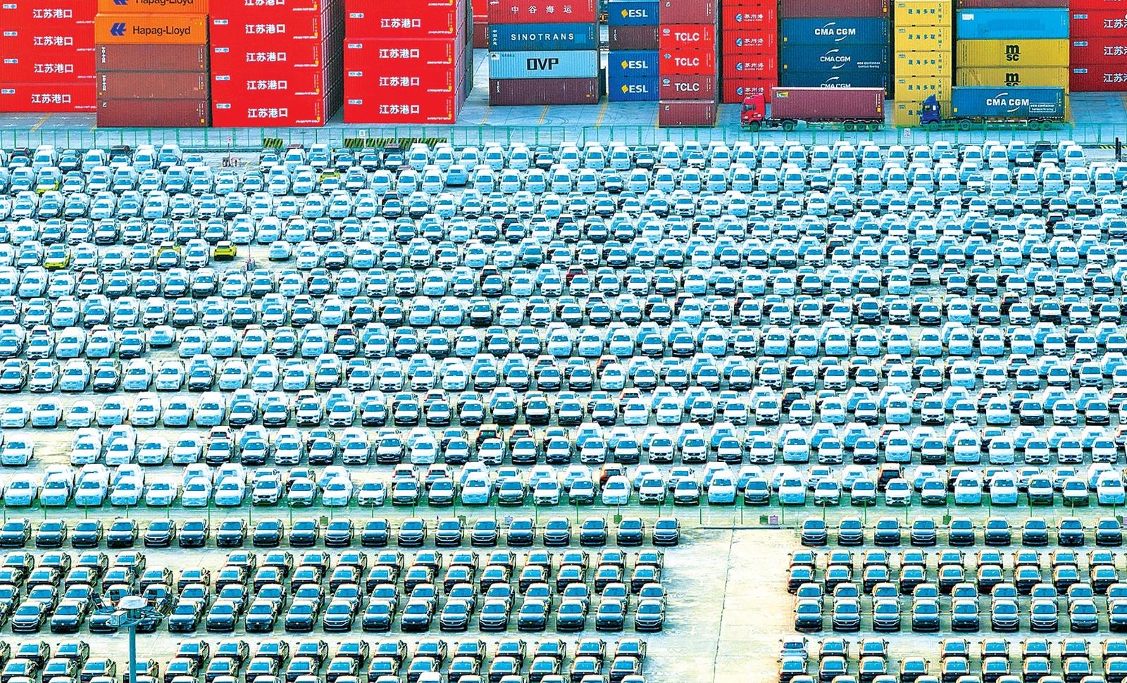 这是5月12日在江苏南京龙潭港集装箱码头拍摄的准备装船出口的汽车(无人机照片)。据5月12日中国汽车工业协会信息,2025年1至4月,我国汽车产销量分别为1017.5万辆和1006万辆,同比分别增长12.9%和10.8%。前4个月产销量首次突破千万辆,彰显汽车产业活力。