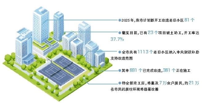 城市管理,民生所系。2025年,我市计划新开工改造老旧小区61个,截至目前,已有23个项目破土动工,开工率达37.7% ……