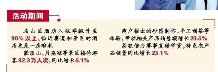 一组数据印证着这场“人气盛宴”的热度:活动期间,全国各地游客慕名而来,名山区酒店入住率飙升至80%以上,临近赛道和景区的酒店更是一房难求。蒙顶山、月亮湖等景区接待游客82.3万人次,同比增长5.1%。