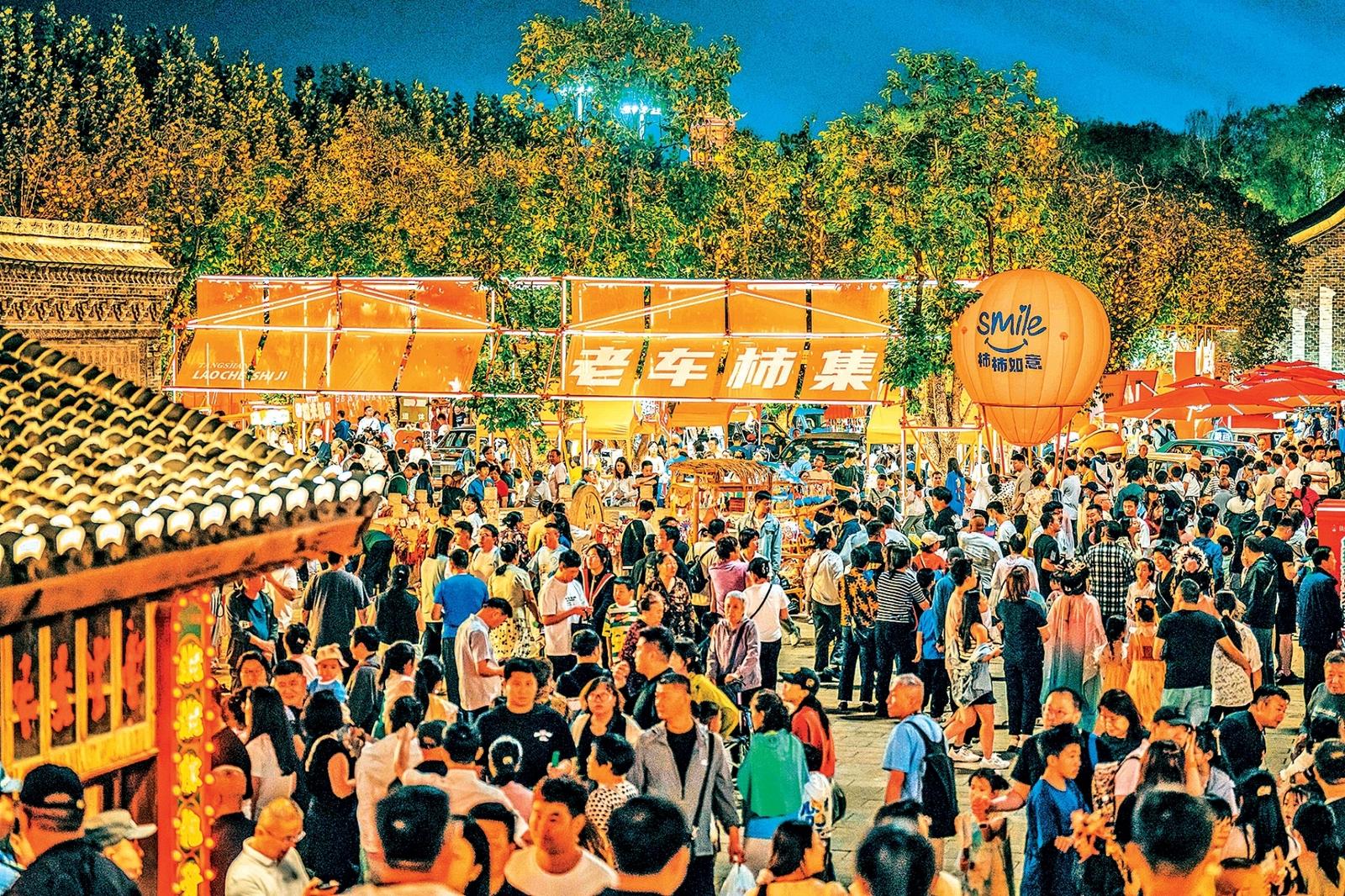6月2日晚,游客在河北省唐山市丰南区河头老街景区游玩。 新华社发(刘满仓 摄)