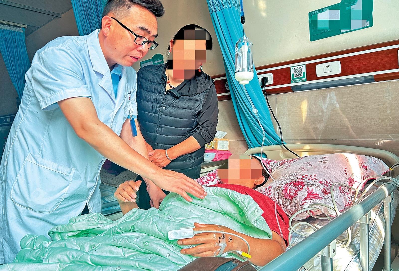 熊刚正在查房,叮嘱珠拉术后注意事项
