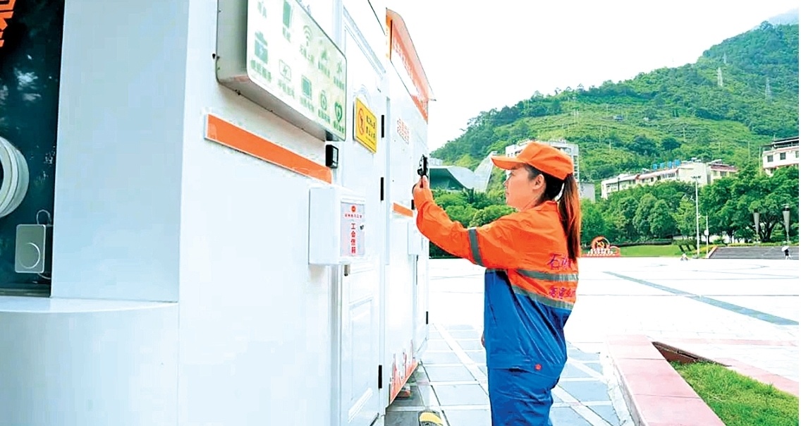 走进爱心小屋,空调、饮水机、冰箱、微波炉、急救箱、充电插座等设施一应俱全。针对环卫工人常遇突发降雨的工作场景,爱心小屋创新推出“共享雨伞”服务。借助微信小程序,环卫工人可免费借用雨伞,并在全县34个工会驿站归还,借还记录全程可追溯,既避免了雨伞流失,又实现了资源的循环利用。