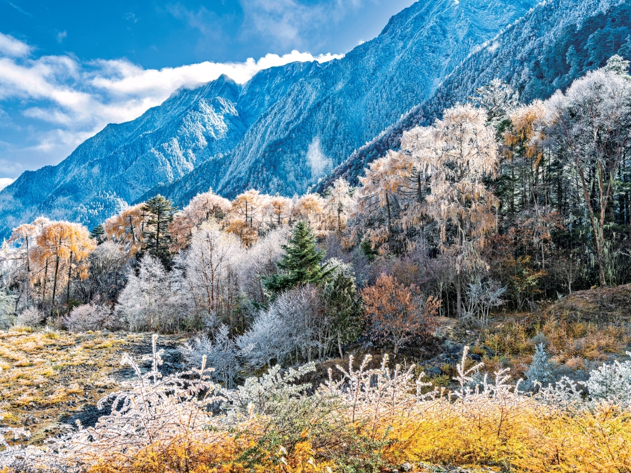 近日,石棉县贡嘎山南麓的田湾河景区,迎来了入冬后的降雪。雪花飘落,为连绵群山与蜿蜒河流披上了银装,展现出静谧而壮美的冬日画卷。