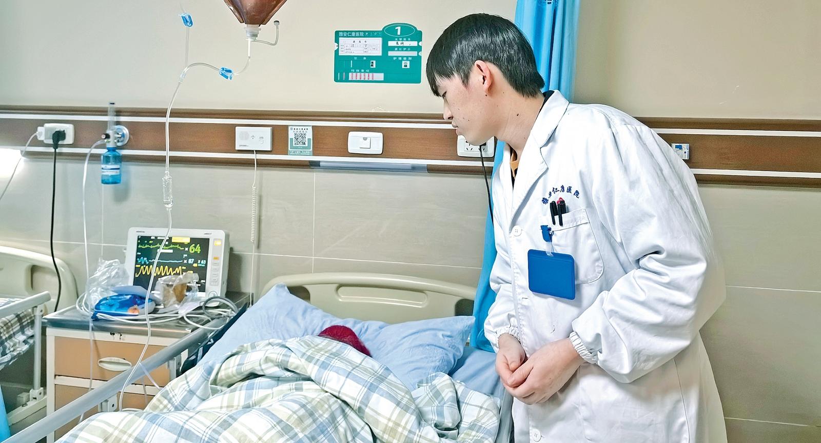 “痛、恶心、吐……大概有五个小时了。”杨婆婆的家属告知了医生情况。此时,消瘦的杨婆婆看上去没什么精神。